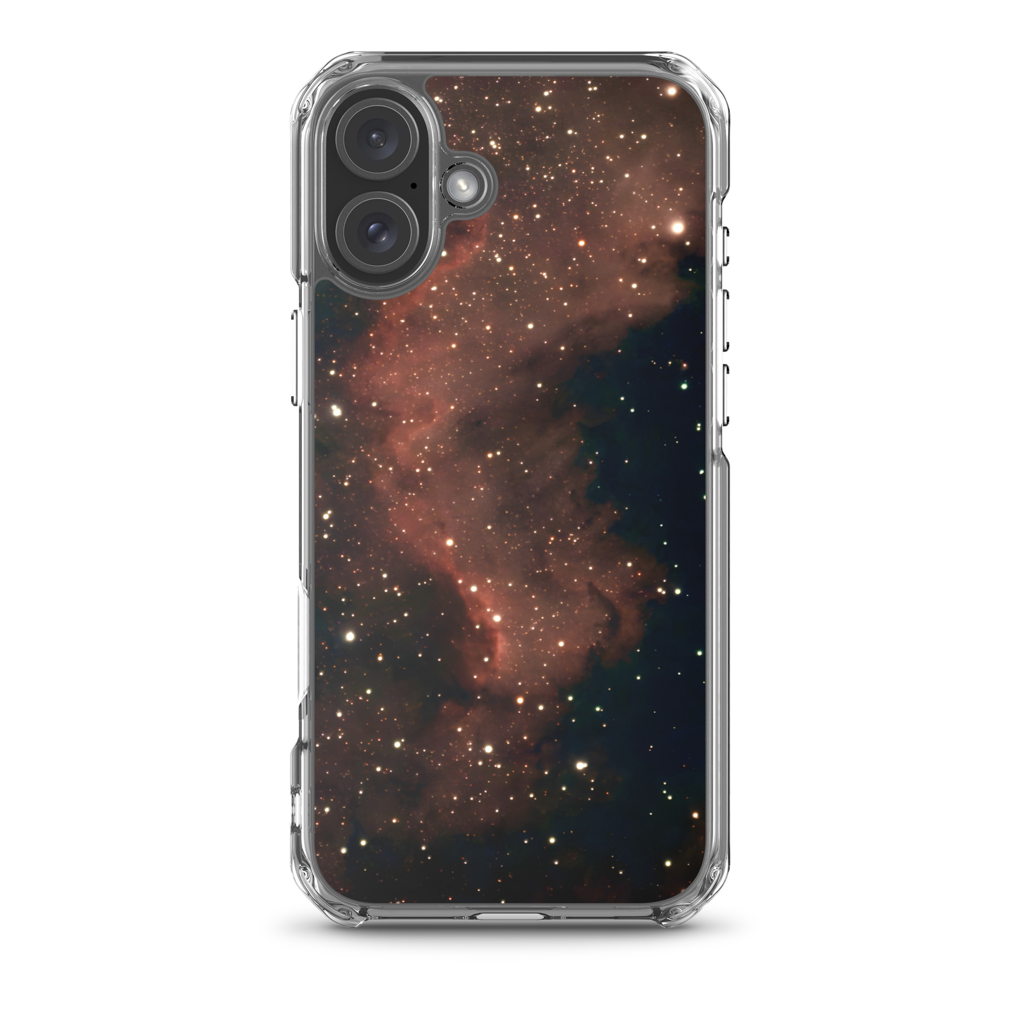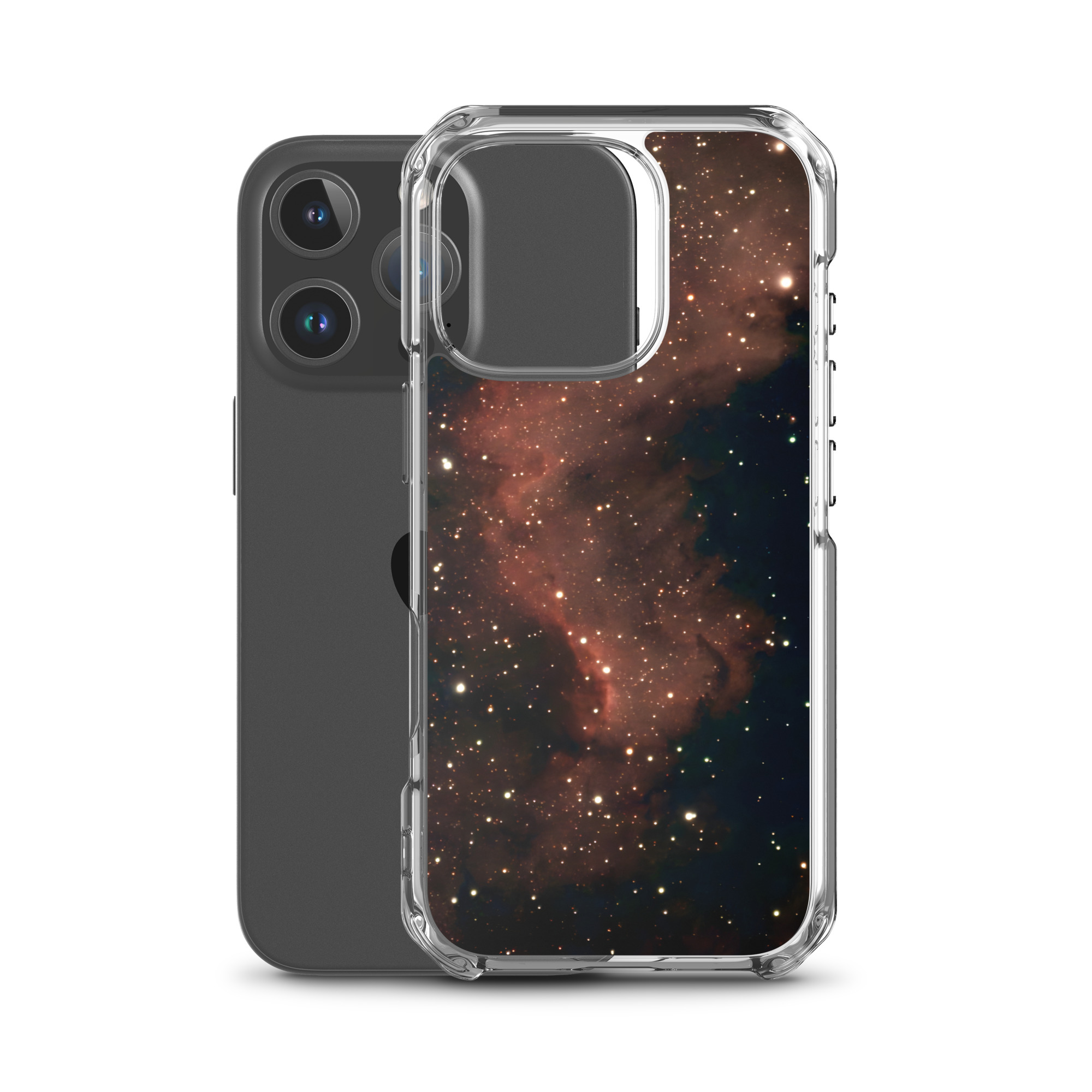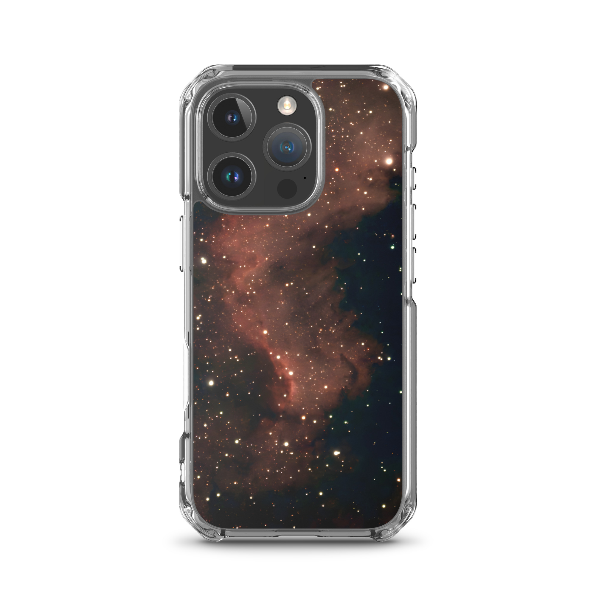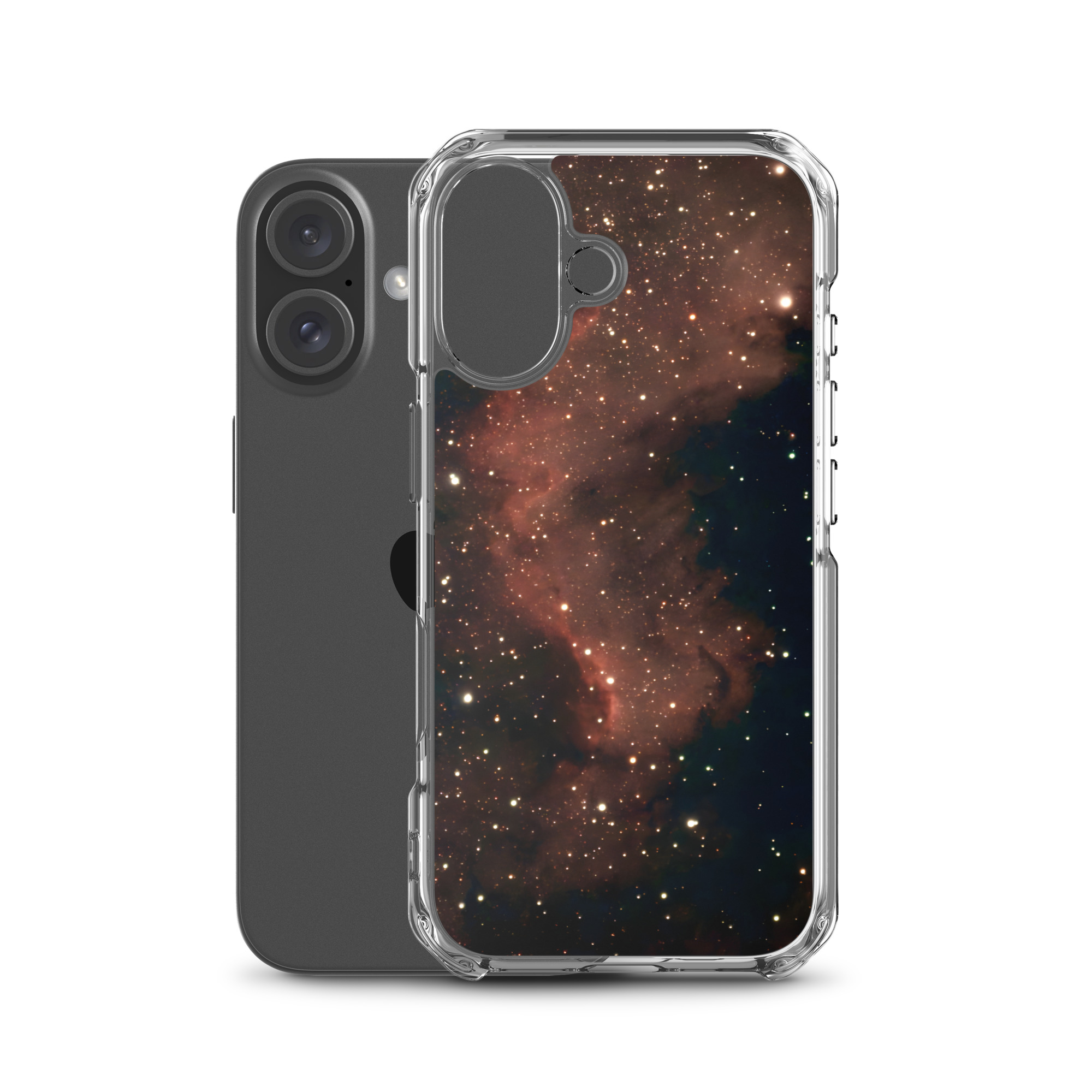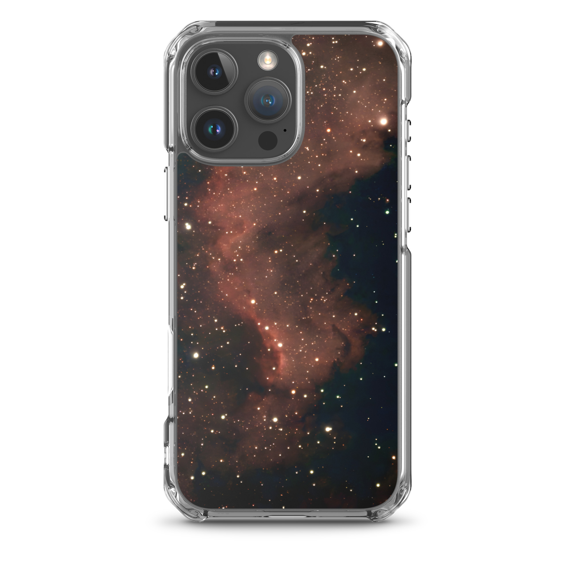 Show off your phone and your love for the cosmos with this clear iPhone® case featuring the North America Nebula (NGC 7000). This stunning deep-sky image, captured from the night skies of Tallinn, Estonia, reveals glowing red and gold hydrogen clouds shaped by interstellar winds in the constellation Cygnus. Lightweight and durable, it protects your phone while showcasing a real fragment of the Universe.