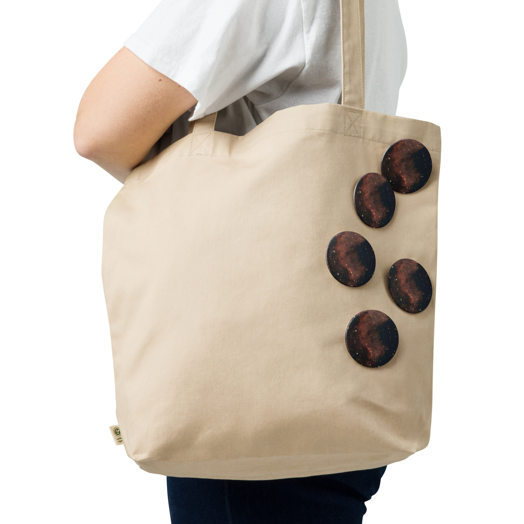 Add a cosmic touch to your outfit or bag with this set of pin buttons featuring the North America Nebula (NGC 7000). The vivid red and gold hues of this real deep-sky image, captured from the night skies of Tallinn, Estonia, showcase glowing hydrogen clouds that resemble the shape of North America. A small yet powerful reminder that the Universe is closer than you think.